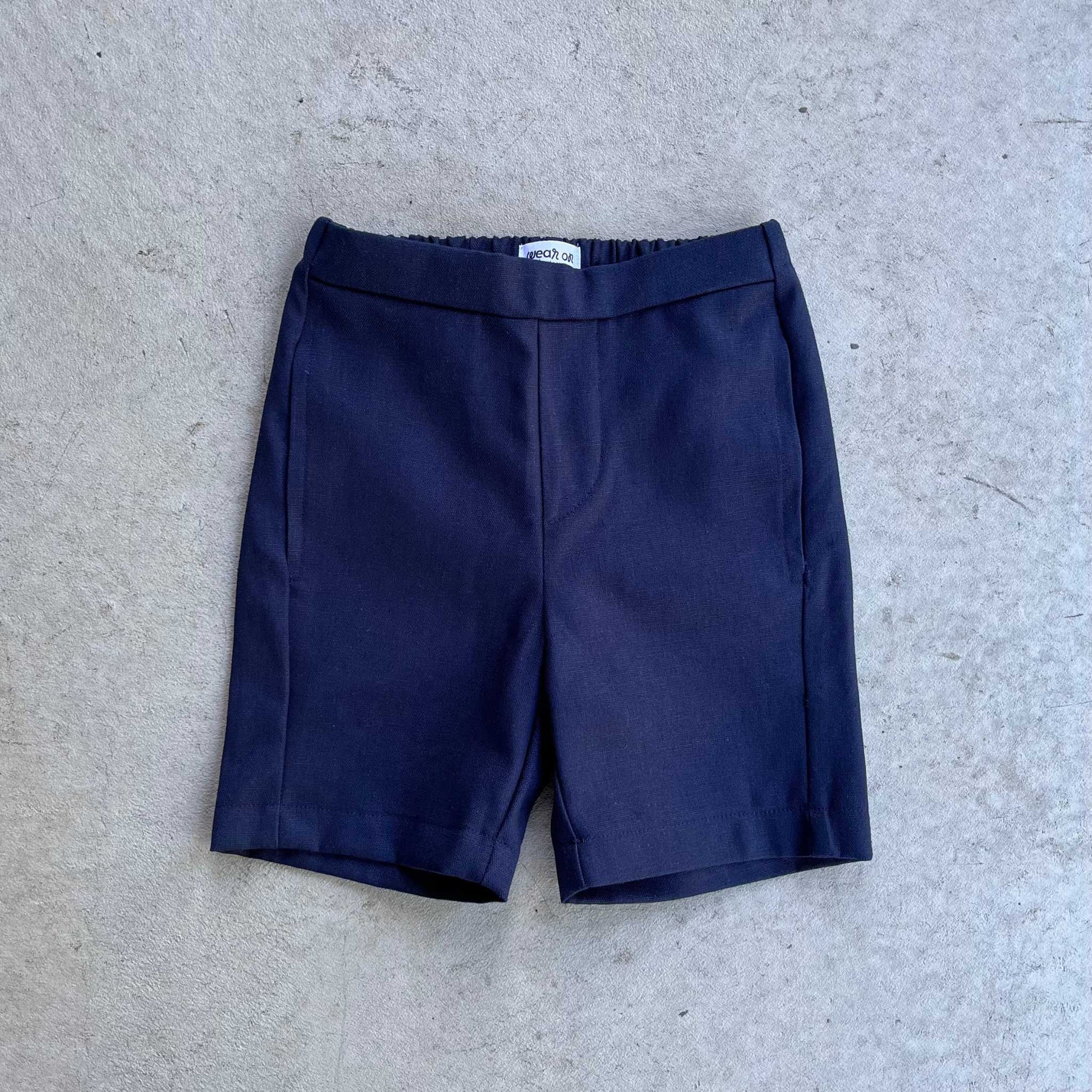 the chino shorts offer a medium rise with a straight leg, landing just above the knee. Featuring slit pockets on both sides and non-functional fly stitching for a sleek look. The waistband lies flat along the front with elastic in the back for kid-friendly, easy dressing. Pair these shorts with our classic t-shirt or tank.